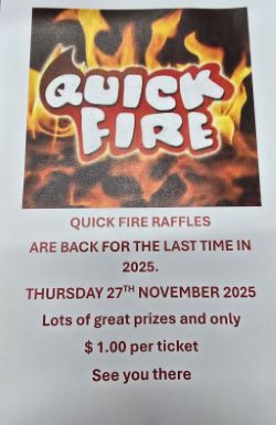 Quick Fire Raffles: Thursday 27 November 2025, this is the last for 2025, many great prices at only $ 1.00