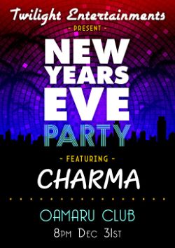 NEW YEARS EVE: Band CHARMA from Dunedin starting at 8.00pm - midnight in the hall, courtesy coach will be running until 12.30am. Bar closes at midnight. Open to members and non-members, so come on down and see in the New Year at the Club - R.O.A.R